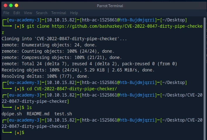 git clone https://github.com/basharkey/CVE-2022-0847-dirty-pipe-checker