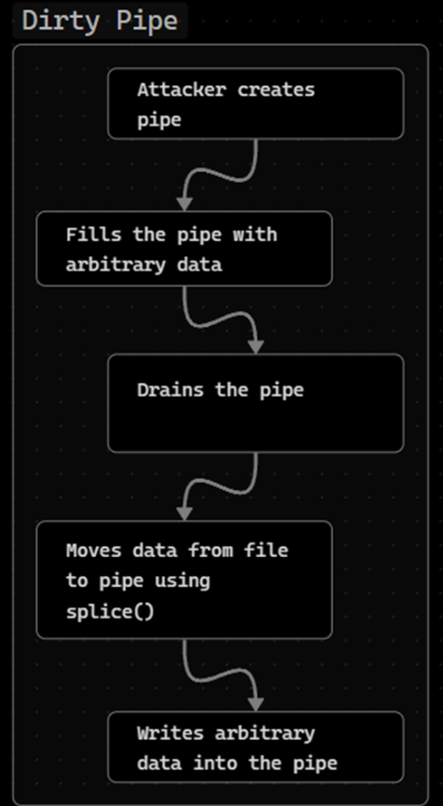DirtyPipe exploits a vulnerability in pipe caching and memory management. This allows: